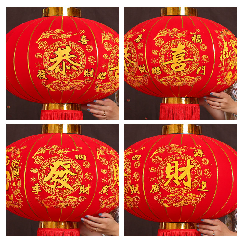Lantern Giant Red Lantern Auspicious Fu Characters Flocking Lantern Hang Decorations for Spring Festival Festive Outdoor Red Lanterns