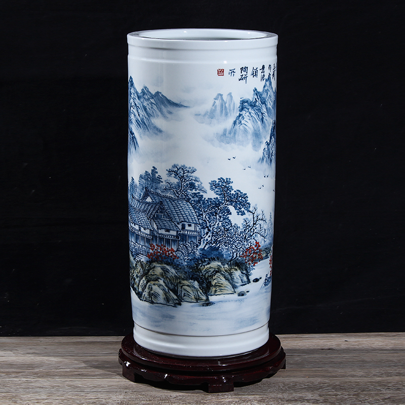 Jingdezhen Ceramic vase Handpainted green flower Porcelain Dragon TatXX_ENCODE_CASE_CAPS_LOCK_Off Arrow Cylinder Scroll Cylinder Painting And Calligraphy Cylinder Large Swing Piece Living Room Floor