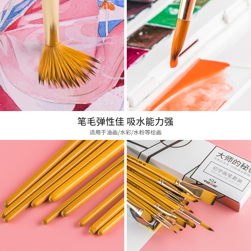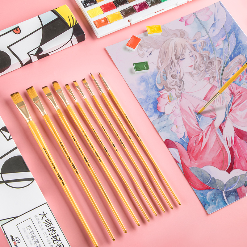 N201 nylon 10 hybrid mounted pointed wool paintbrush 6 branches 101 Wolf Milli Brush 6 101 Double Number Wolf Milch Brush 6 Support with pen Package Pig Mane Brush 10