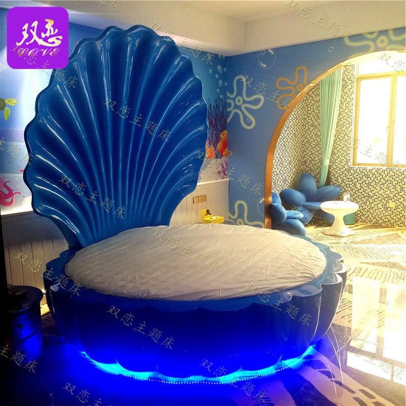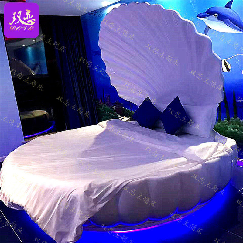Themed Hotel Spice Room Creative Shell Round Bed Multifunction Couple Electric Bed Guesthouse Vibrating Bed Folk Juku Water Bed