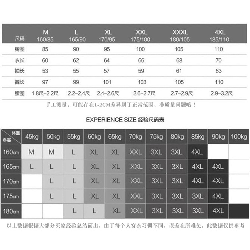 L(90-110 kg) XL (110-125 kg) XXL (125-140 kg) 3XL (140-155 kg) 4XL (155-180 kg) M (within 95 kg)