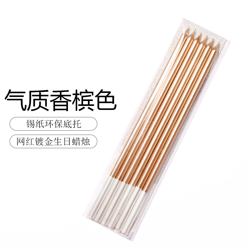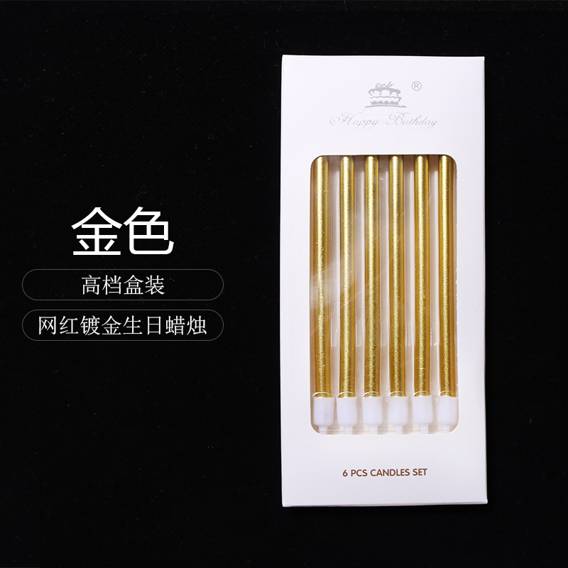 Birthday Cake Candles High-grade creative Romantic Adult Smoke-free Slender Electroplated Gold long Pole pencil candles