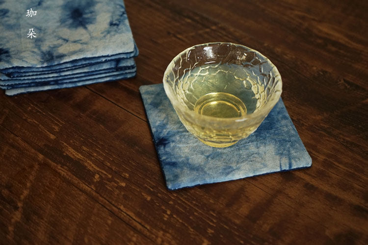 Handmade Plant Zstained Tea Cup Mat Cotton Linen Wood Dyed Indigo Indigo Thermal Insulation Mat Tea Dau Blue Dyeing Cotton Fabric Laminated Cotton Cup Cushion-Taobao