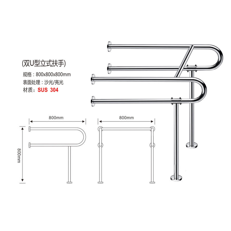 Movable handrail Double U-shaped handrail Double U-shaped three-dimensional handrail Double U-shaped handrail crossbar T-shaped handrail U-shaped handrail three-dimensional L-shaped left handrail L-shaped right handrail