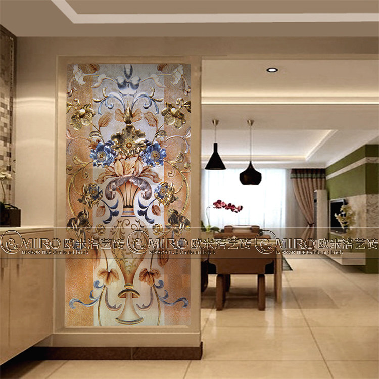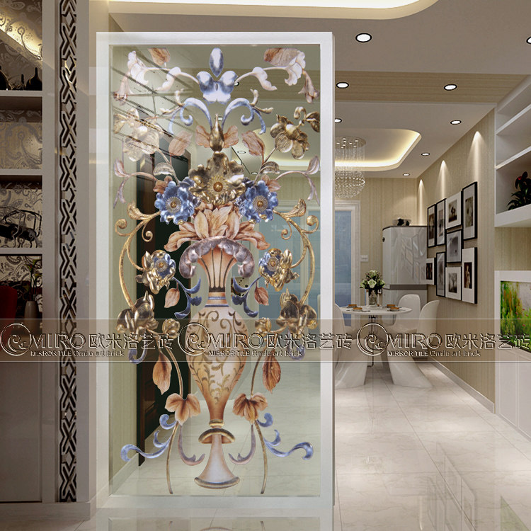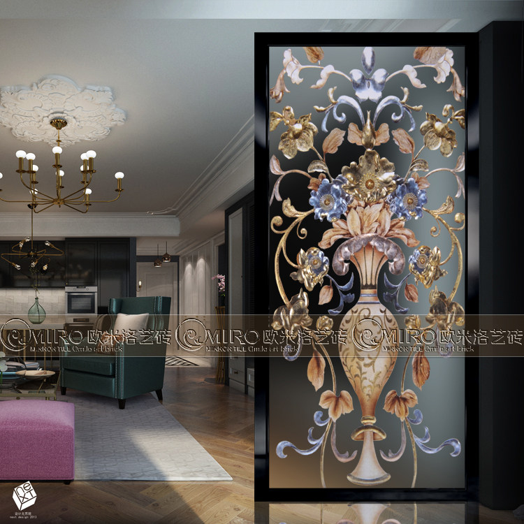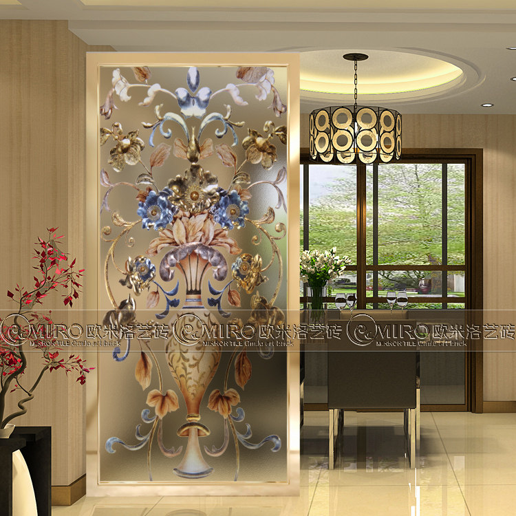 Art glass partition entrance entrance, frosted sliding door tempered carved living room cabinet aisle screen European vase