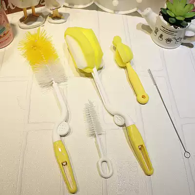Long handle sponge cup brush set Bottle pacifier refresh product rotating straw brush Pink girl boy cartoon