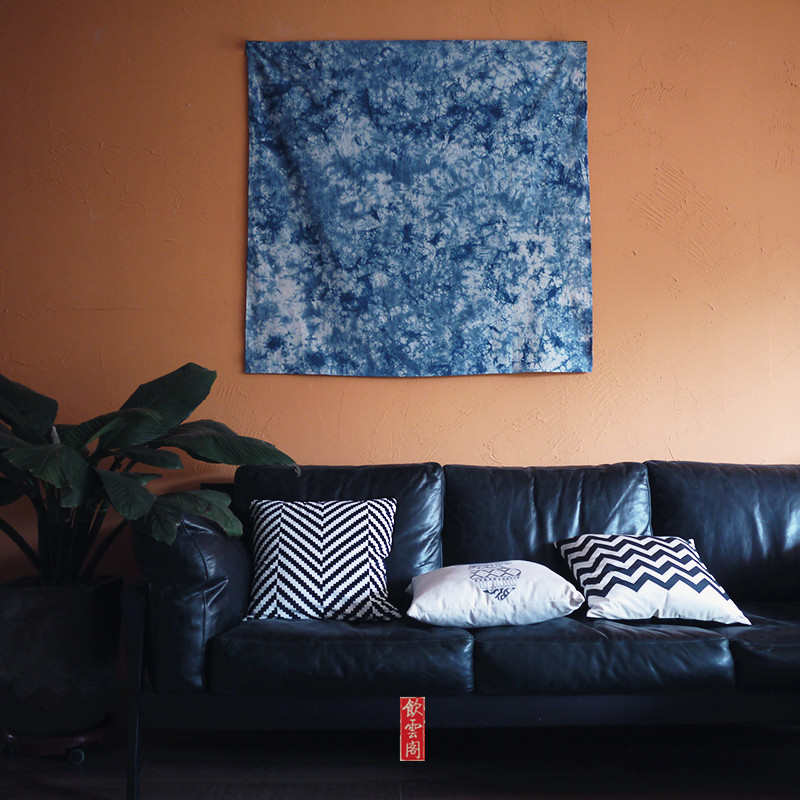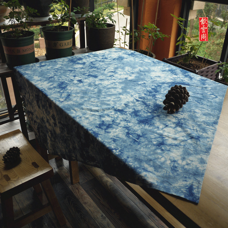 Yunnan Dali tie-dyed cloth plant blue dyed cotton cloth cloud dyed square tablecloth screen decoration wall hanging cloth