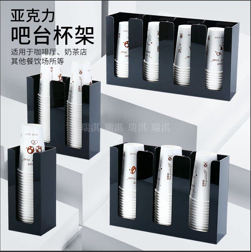 Acrylic disposable straight two-grid oblique four-grid cup holder coffee milk tea paper cup holder cup holder bar cup dispenser