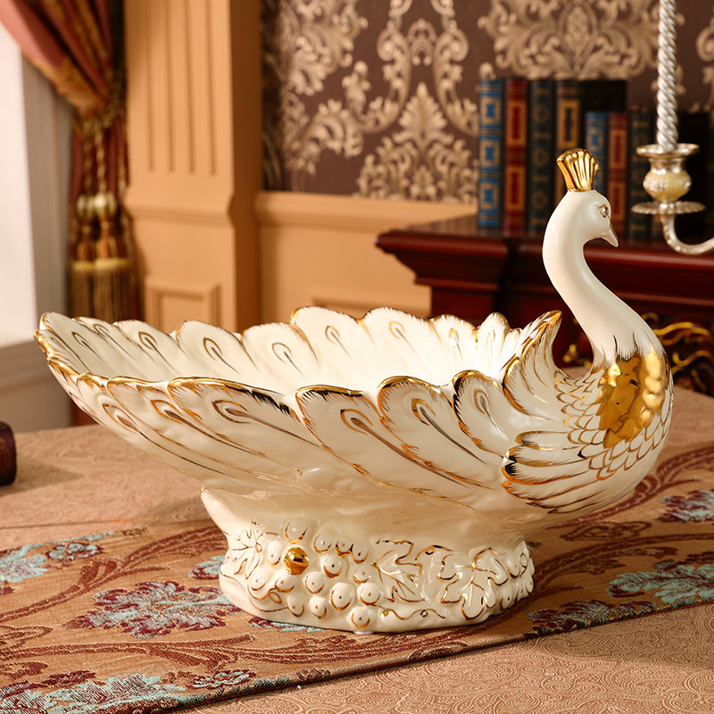 Peacock creative European-style fruit plate ornaments luxury living room high-end ceramic fruit plate home decorations coffee table ornaments