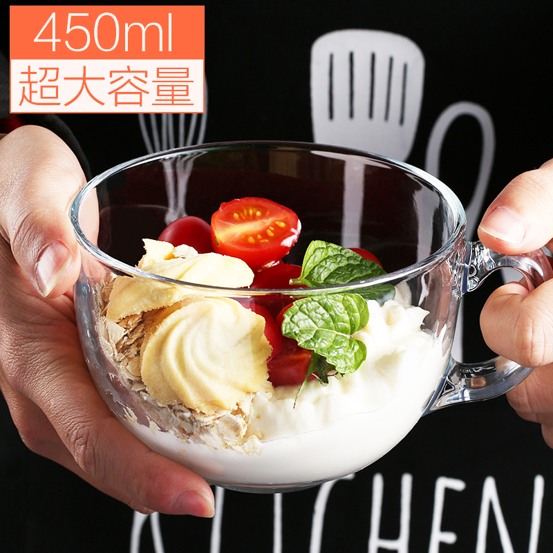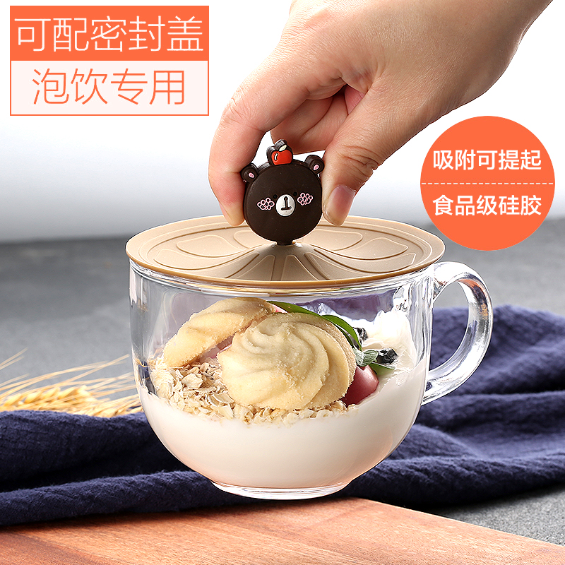 Large capacity mug Women's glass Milk cereal bowl Breakfast oatmeal cup Coffee belly household spoon with lid