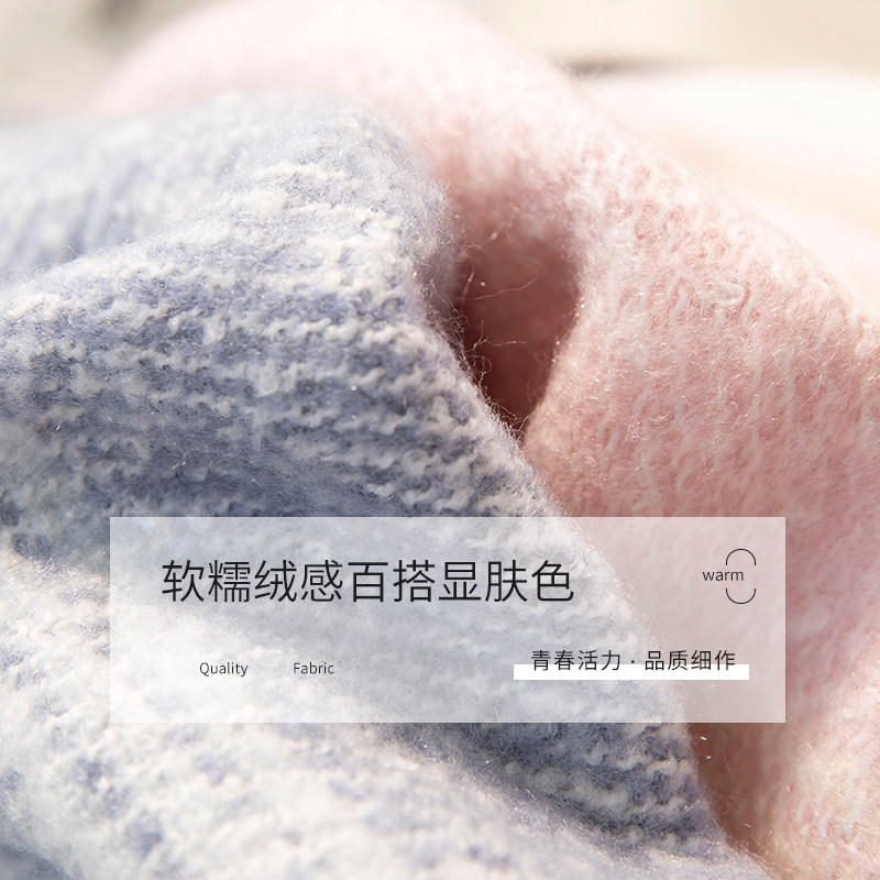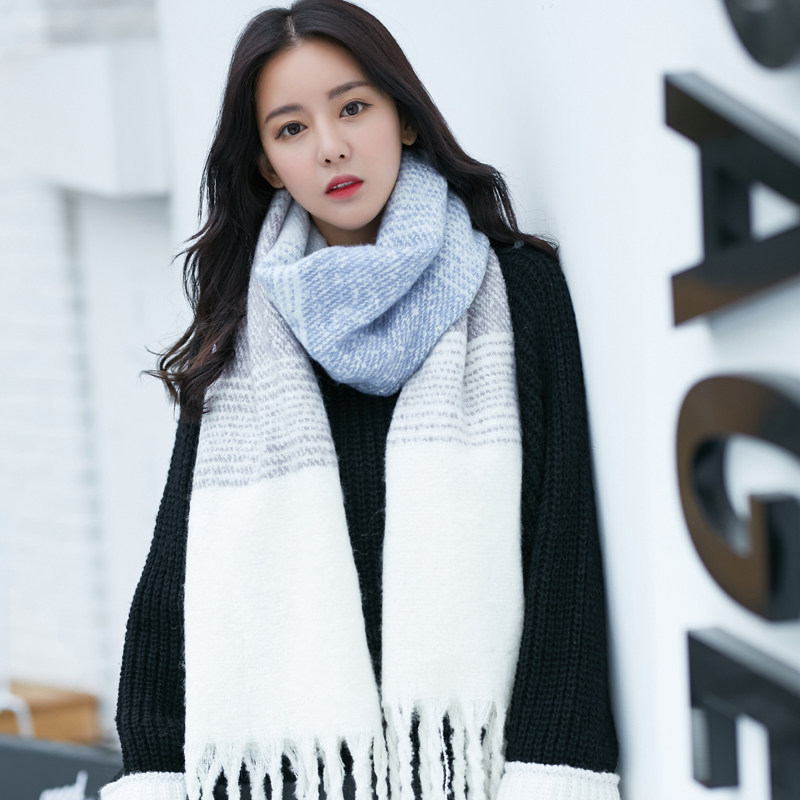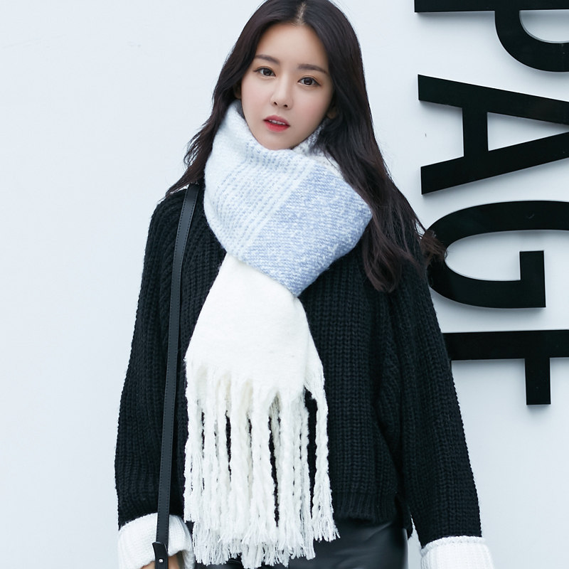 Fancet scarf women's winter Korean version trendy striped color matching autumn and winter all-match tassel thickened warm scarf shawl