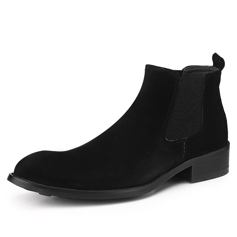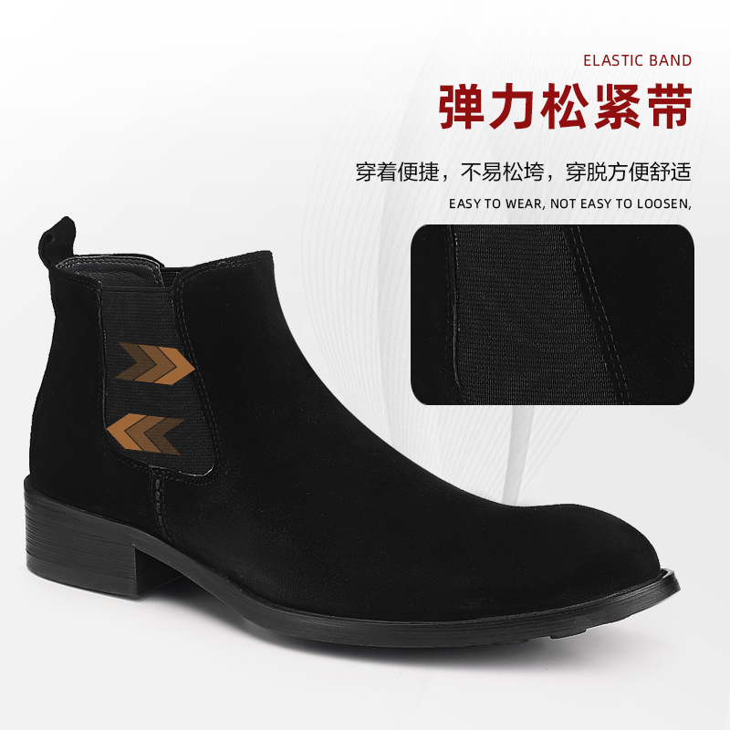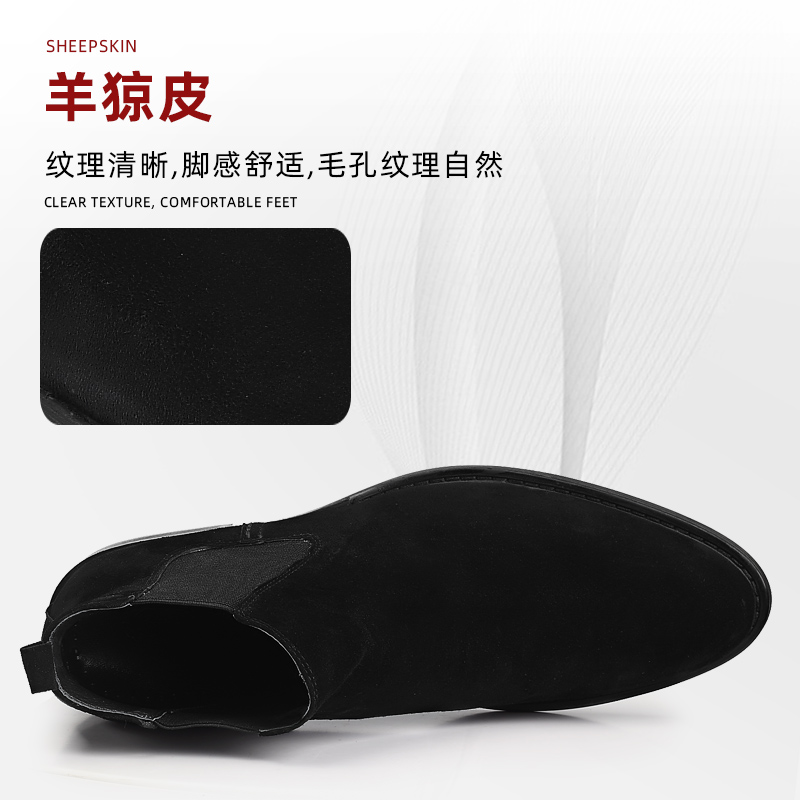 VQGT Inron high cylinder leather shoes Men's short boots Pointed Martin Boots Genuine Leather Chelsea Leather Boots Anti Suede Male Boots Plus Suede