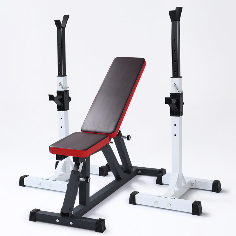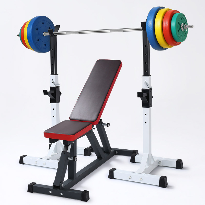 Squat rack Household adjustable bench press rack Professional two-piece weightlifting bed Barbell set Barbell stool fitness equipment