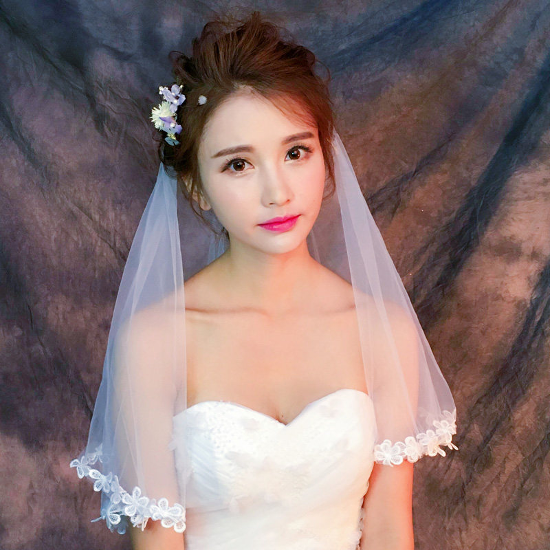 Veil bride main wedding dress Wedding long version short retro white net red photo props Lace headdress Super Xian Sen department