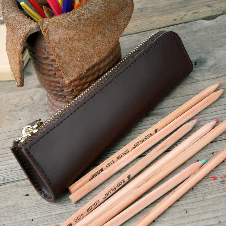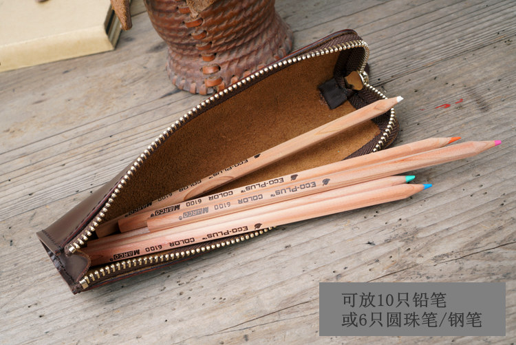 Pen bag male real - leather college students in high school stationery bag female waterproof headcoat skin hand - simple