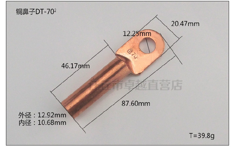 Manufacturer direct copper wiring terminal DT-70mm B grade copper wiring terminal red copper plug oil type non-labeled cable joint