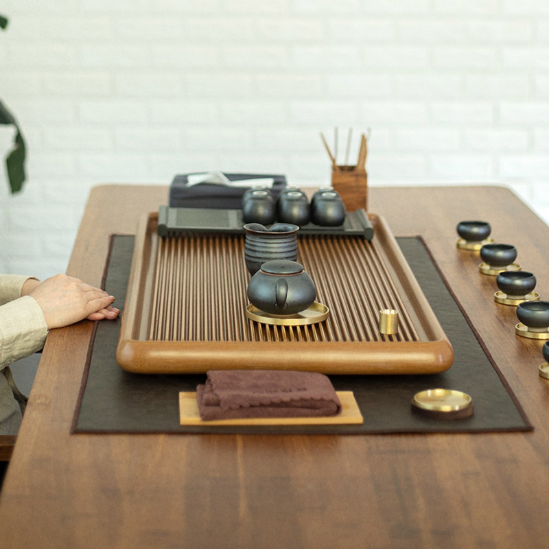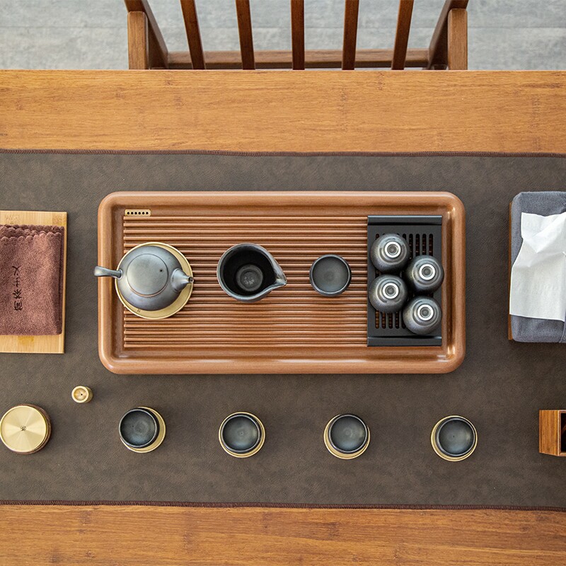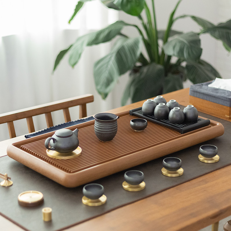 Bakelite tea tray drainage simple tea set German Bakelite tea table Household solid wood tea sea rectangular whole block