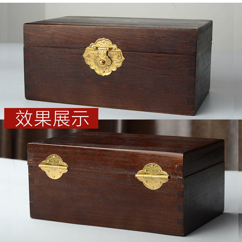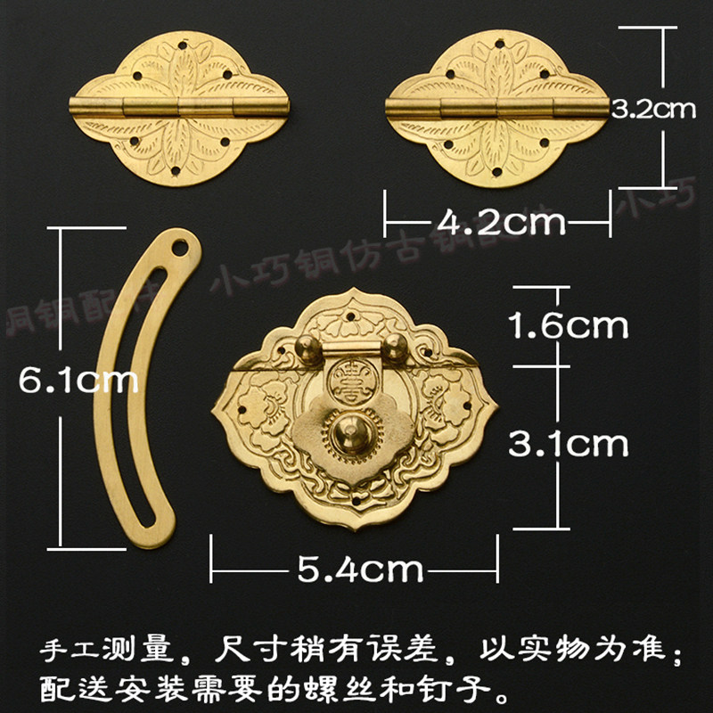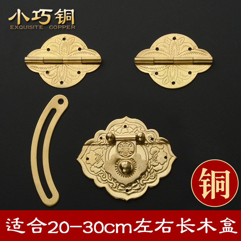 Pure copper box buckle buckle lock jewelry box Hardware copper accessories Vintage small wooden box set Full copper hinge camphor wood box