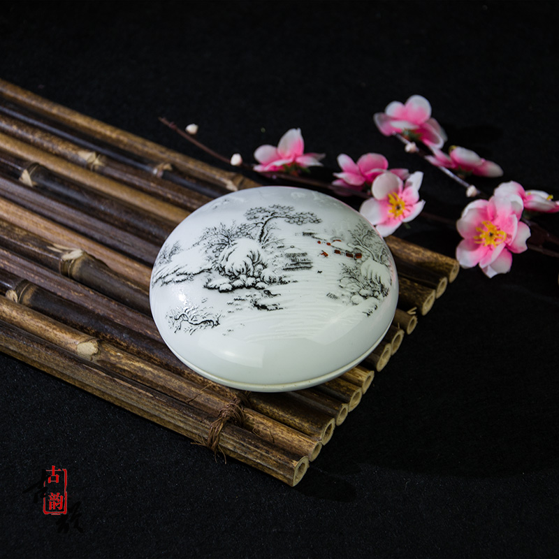 Jingdezhen Ceramics Retro Printing Box Snow View Large Cylinder Cylinder Site Bao Shi