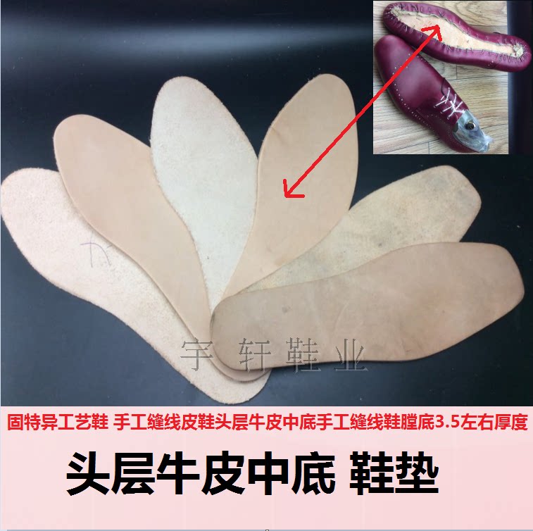 Solid-specific process handmade cow leather shoes midsole cow leather along strips of beef leather sole cow leather heel wood chip heel shoe material