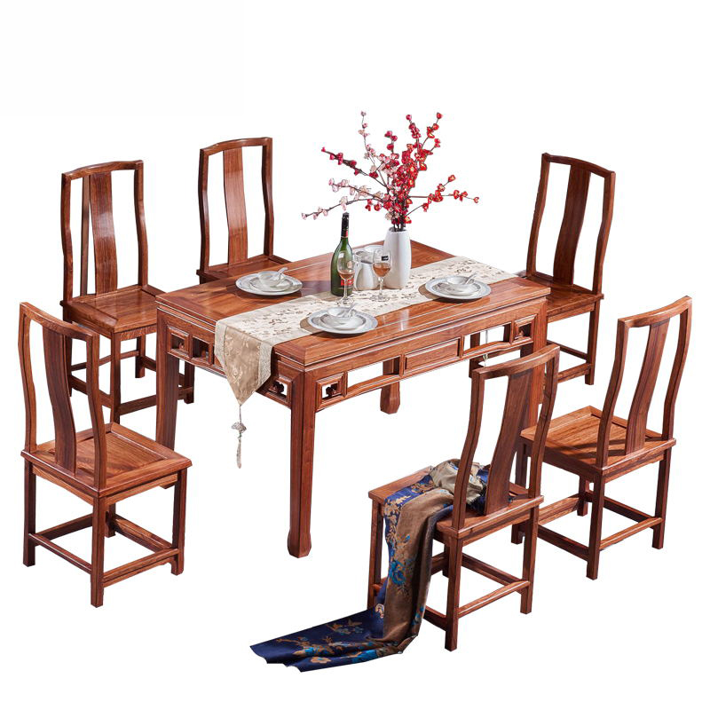 Mahogany dining table rectangular hedgehog red sandalwood dining table new Chinese style rosewood dining table restaurant solid wood dining table and chair combination