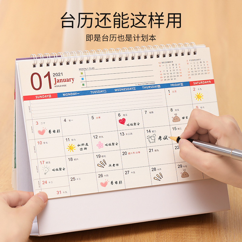 Taiwan calendar 2021 creative simple office plan This type of literary and artistic notes Cute desktop ornaments Calendar Daily ins wind 2022 calendar custom Ox year work punch-in small calendar printing