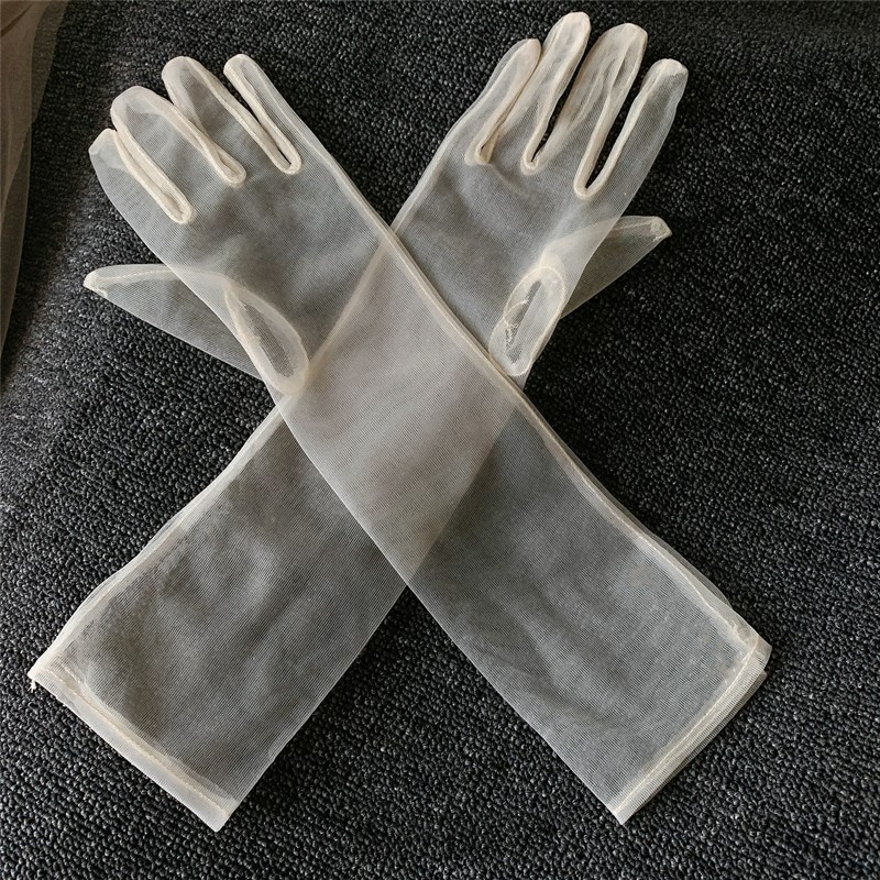 Minimalist bridal wedding dress gloves vegan long version bridal glove champagne black mesh yarn thin sunscreen