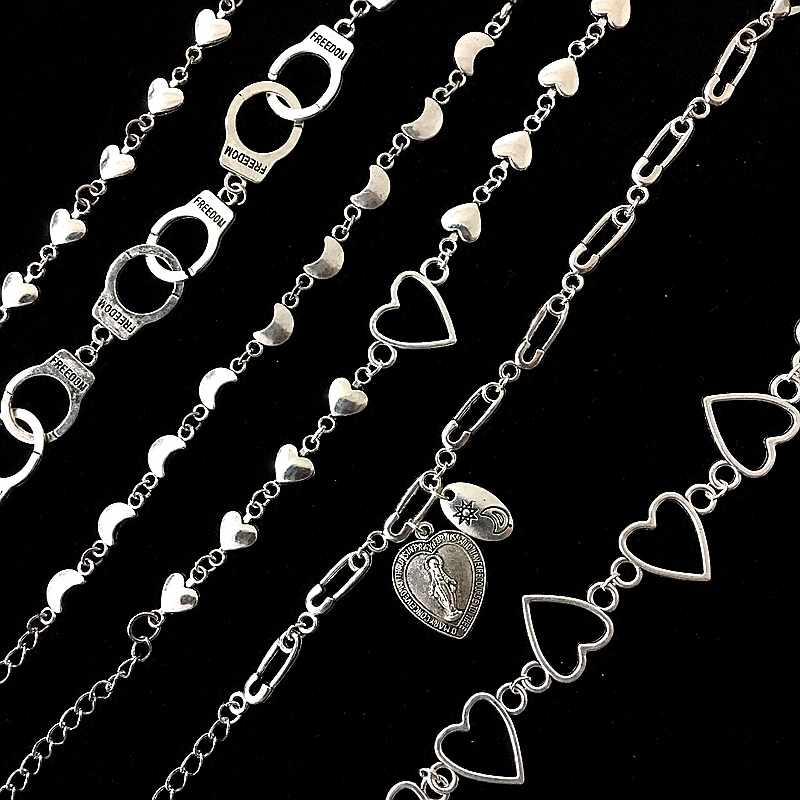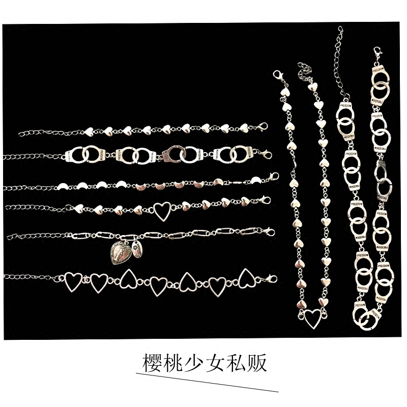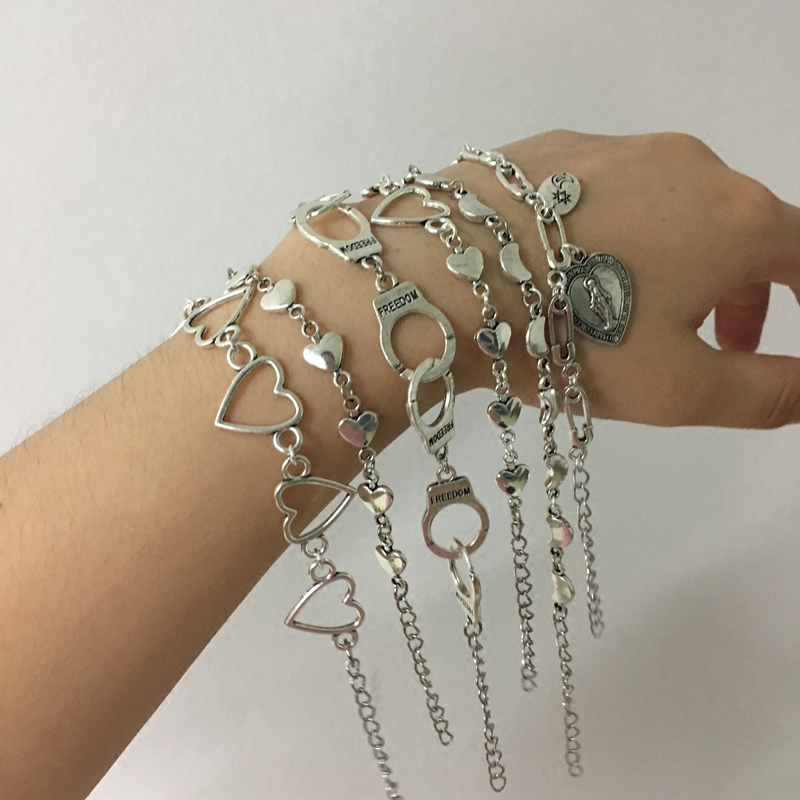 Hong Kong style adjustable thick chain love peach heart hand exaggerated hollow retro old bracelet solid color all-match men and women
