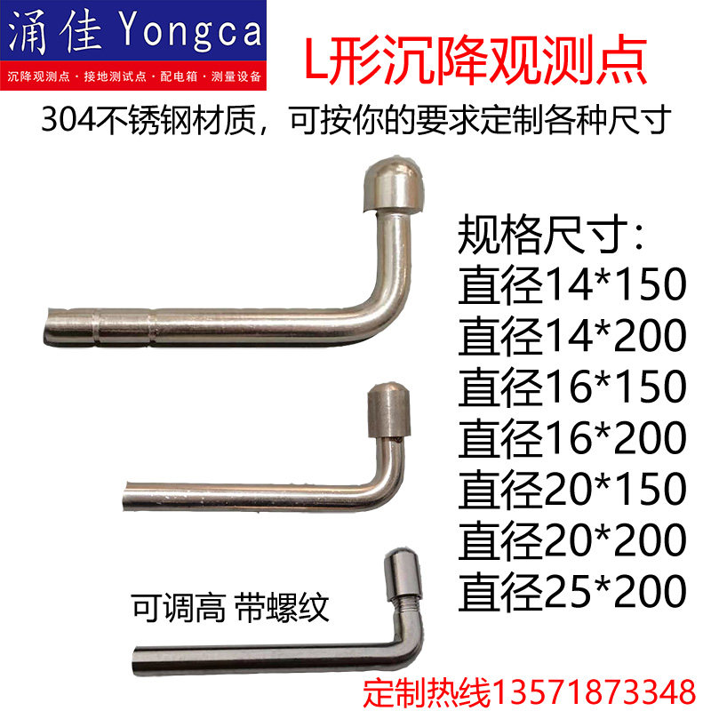 Square marker plus L-type observation point 16 spherical stainless steel observation point 14L stainless steel settlement observation point 16L stainless steel observation point circle marker plus L-type probe 304 stainless steel marker