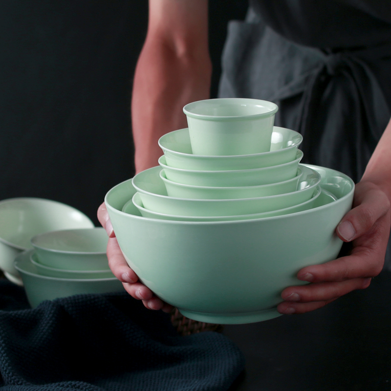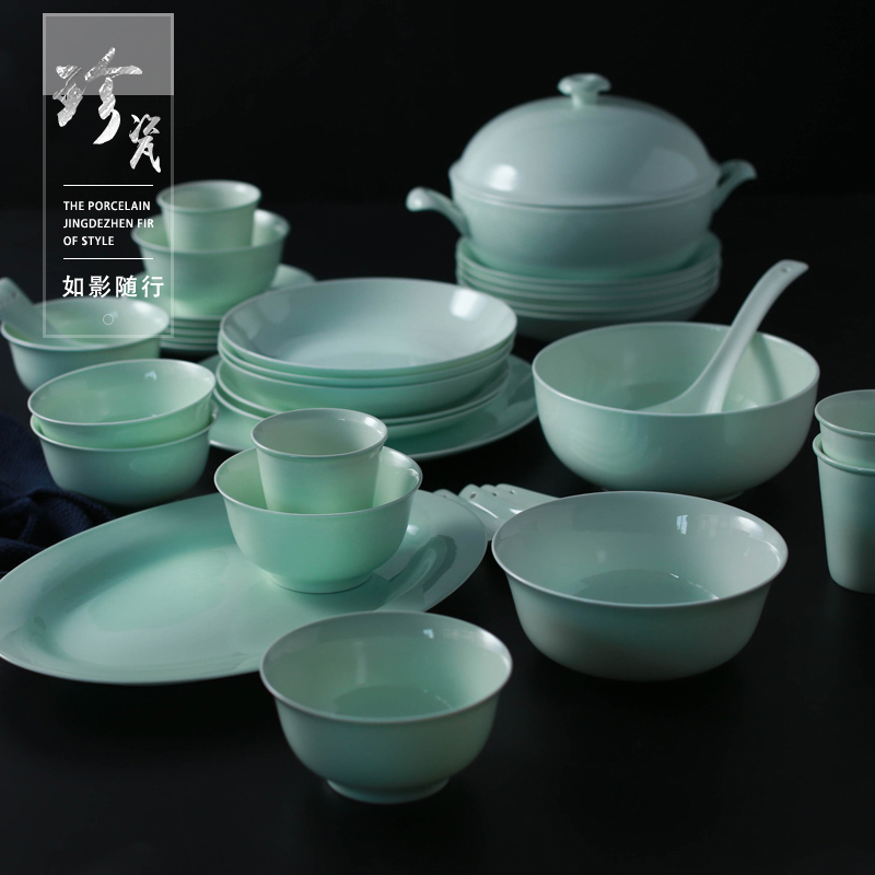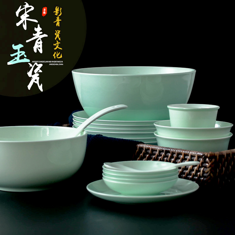 Song Qingyu porcelain bowl set home Jingdezhen Chinese underglaze color Bowl plate high-grade bone porcelain celadon tableware