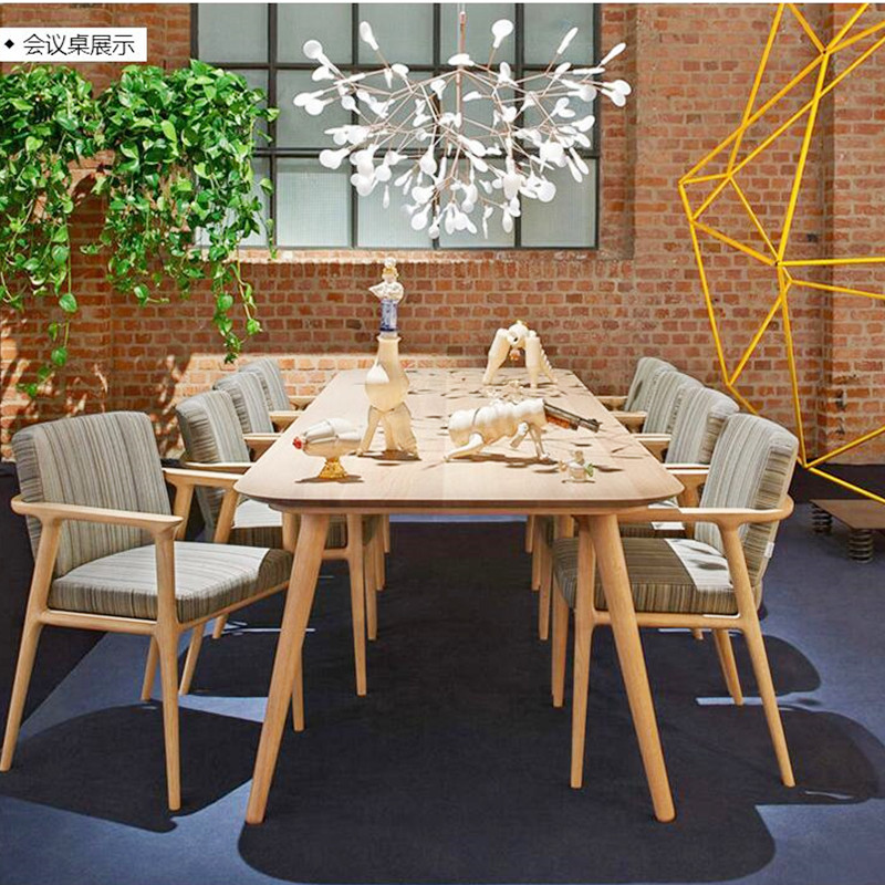 Nordic solid wood long table meeting table and chairs Combined rectangular desk large table long bar table Negotiations table bench