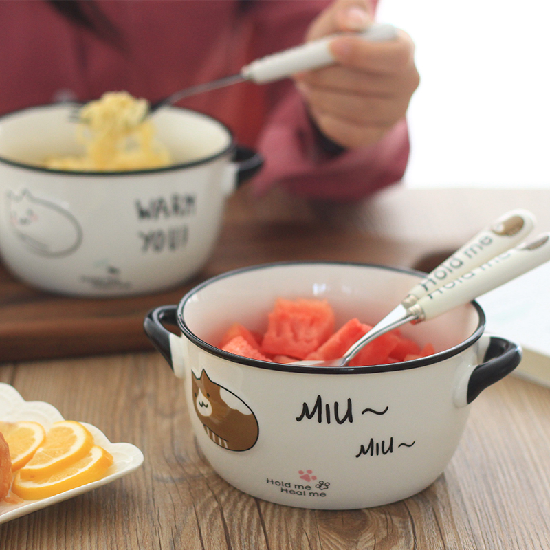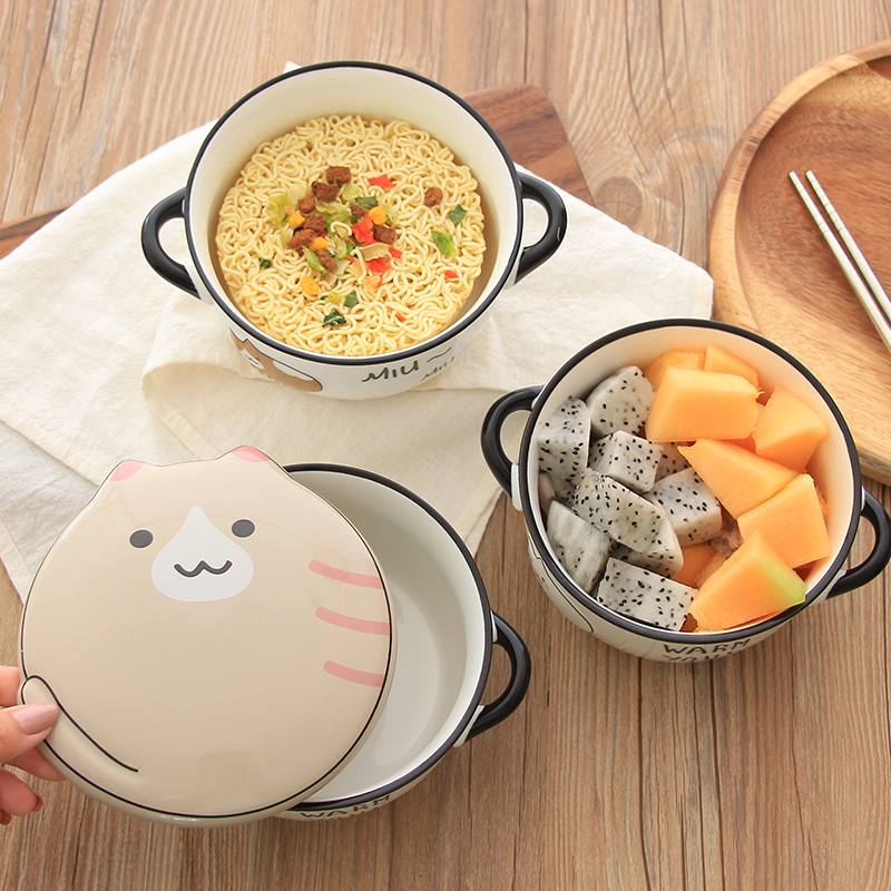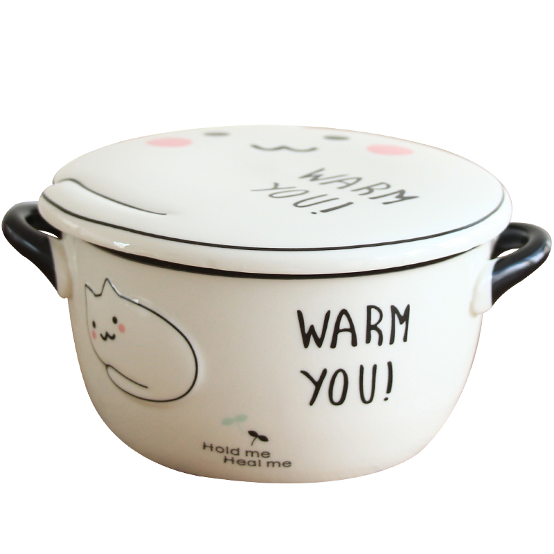 Cute Kitty Ceramic Bubble Noodles Bowl Creative Personality With Lid Soup Bowl Microwave Oven Home Dorm Bread for a Dining Bowl