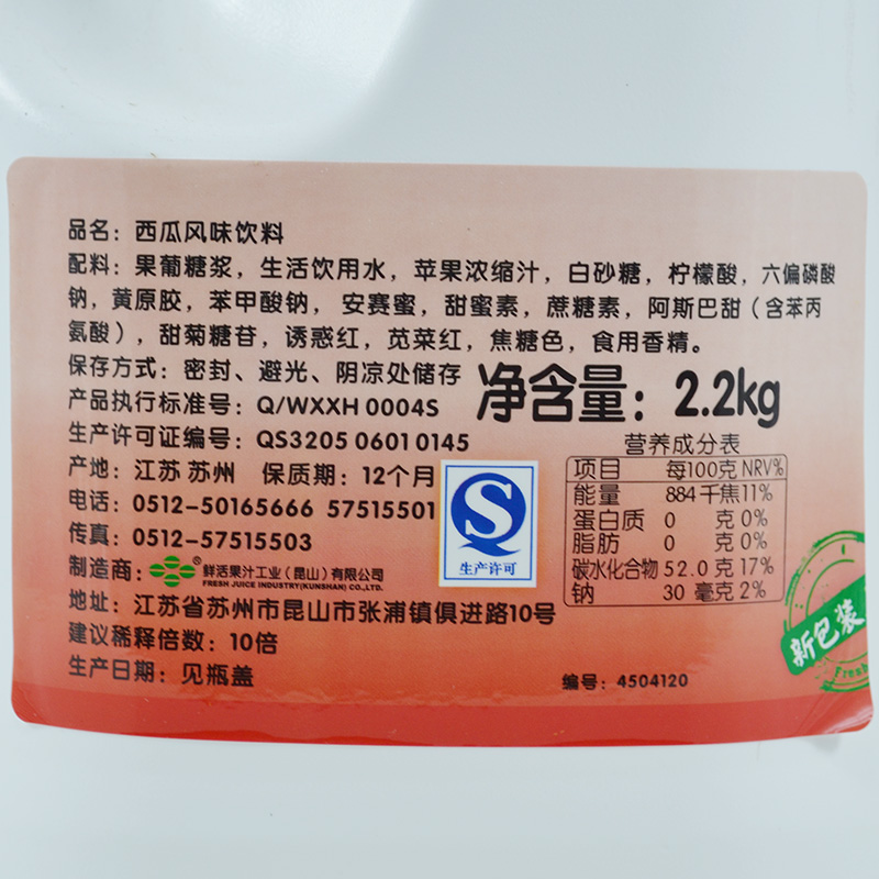 Fresh black forest watermelon juice milk tea shop special 9 times concentrated beverage thick pulp watermelon flavor juice 2 2g