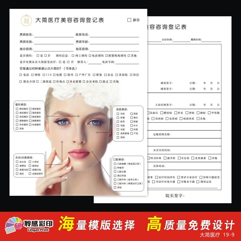 Plastic surgery consultation registration card Customer file This customer information data sheet Business beauty salon paper jam universal