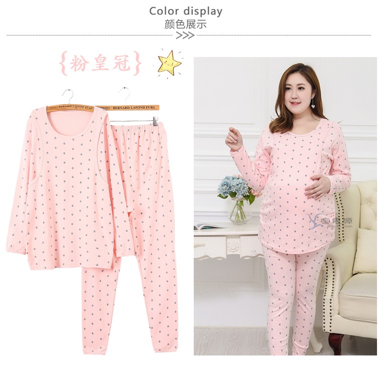 Pregnant women autumn pants suit pure cotton 200 - 300 pounds after birth nursing coat plus large number of nightgown lengthened