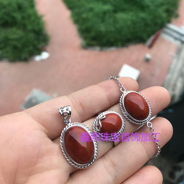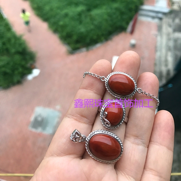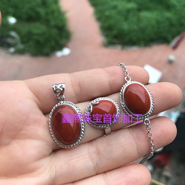 Pure handmade twist edging 925 silver inlay ring hand Nanhong beeswax turpentine Jade Jade Jade can be processed