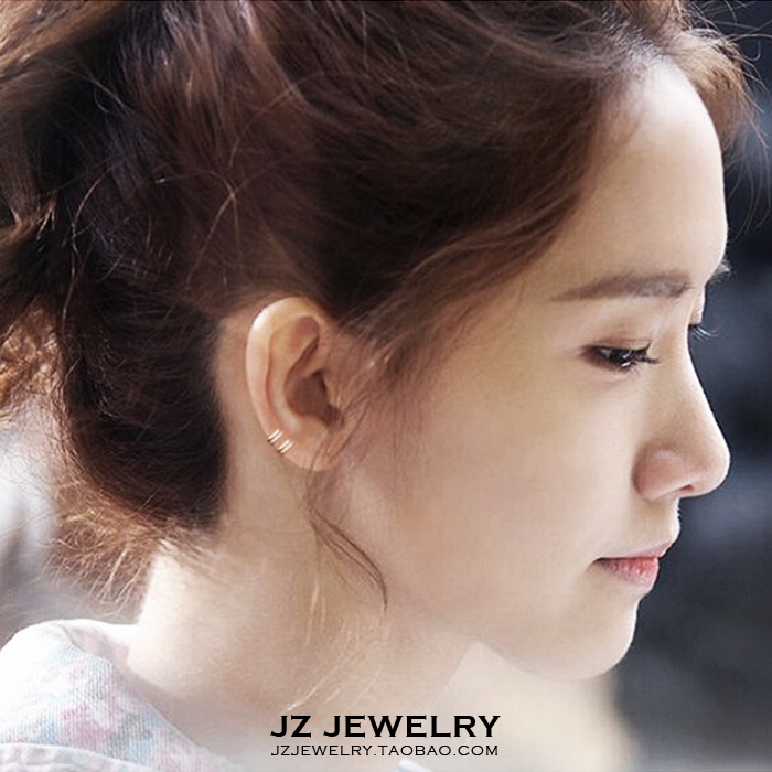 JZ Earraing 99 pure silver anti-allergy minimalist ear pin male Korean temperament double circle earrings woman