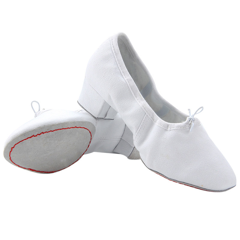 Imei Han Dance Shoes Female Adults Teacher Shoes Soft-bottom Practice Shoes Canvas Belt with yoga belly leather folk dance white