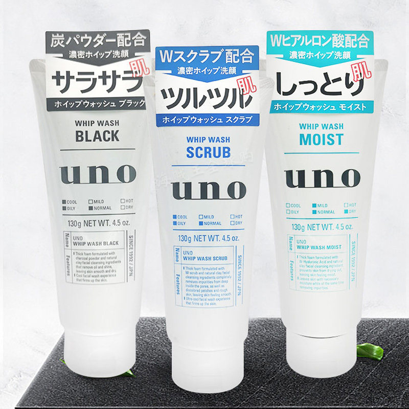 Japan's native UNO Wunuo men's facial cleanser oil control moisturizing blackhead black charcoal scrub facial cleanser military training