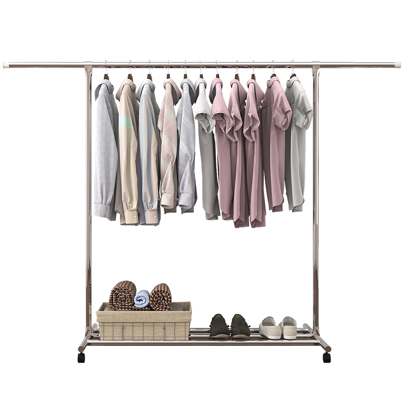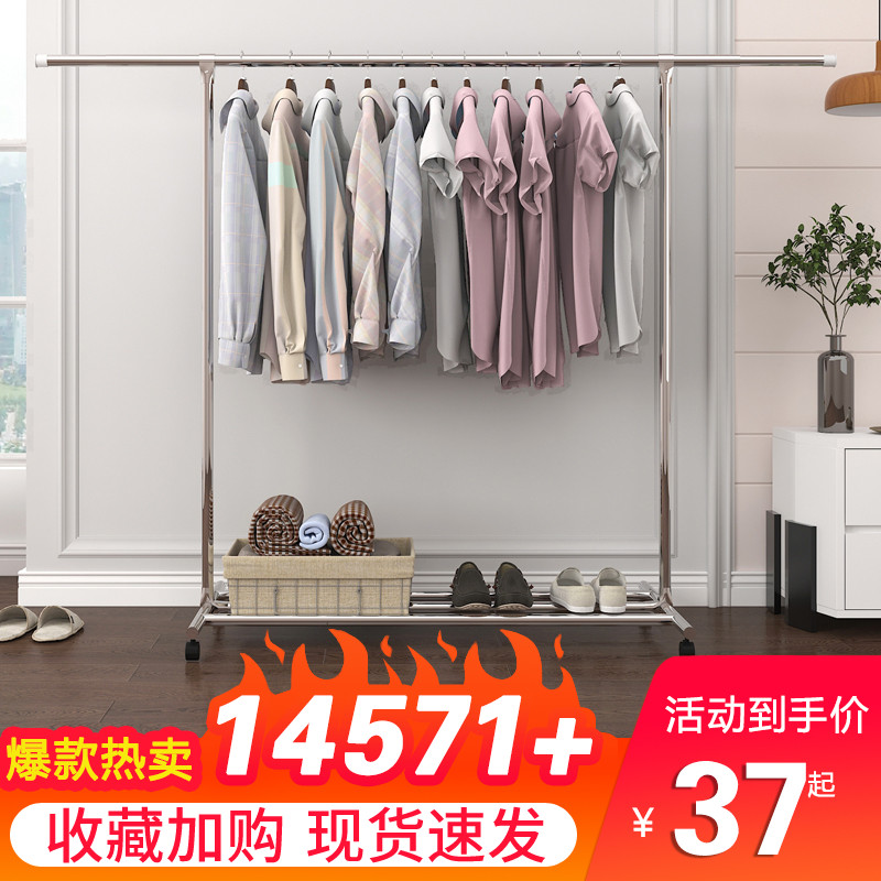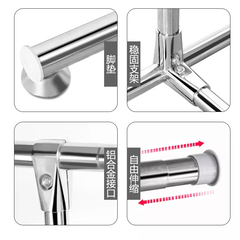 Clothes rack Stainless steel floor folding single rod clothes rack Balcony indoor hanging clothes quilt telescopic drying rack