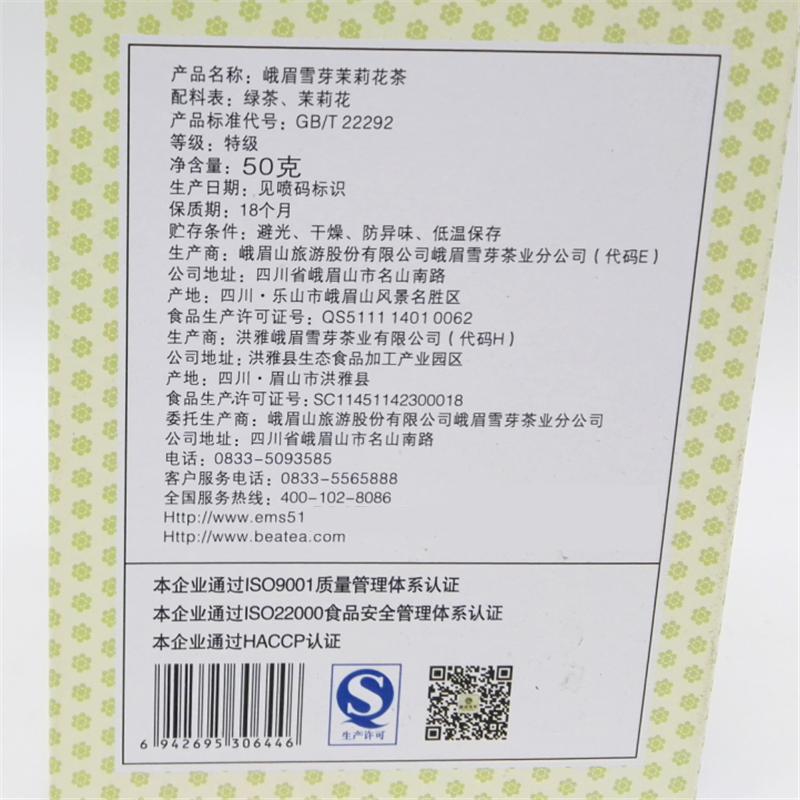 Emei Smell Jasmine Tea 50g Sichuan specially produced tea small box of flowers Summit Chengdu Jasmine Tea New Tea