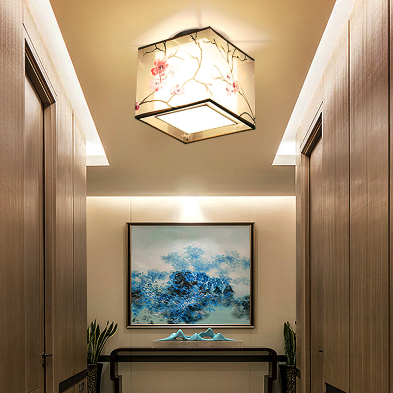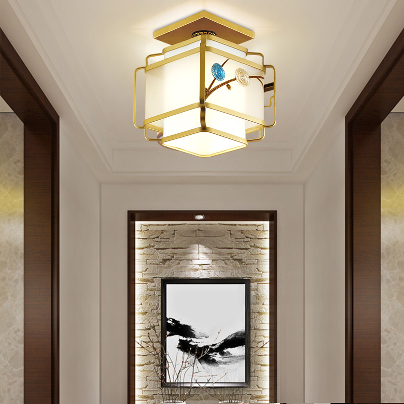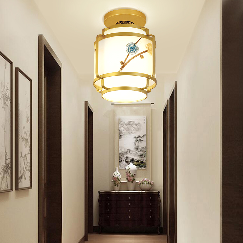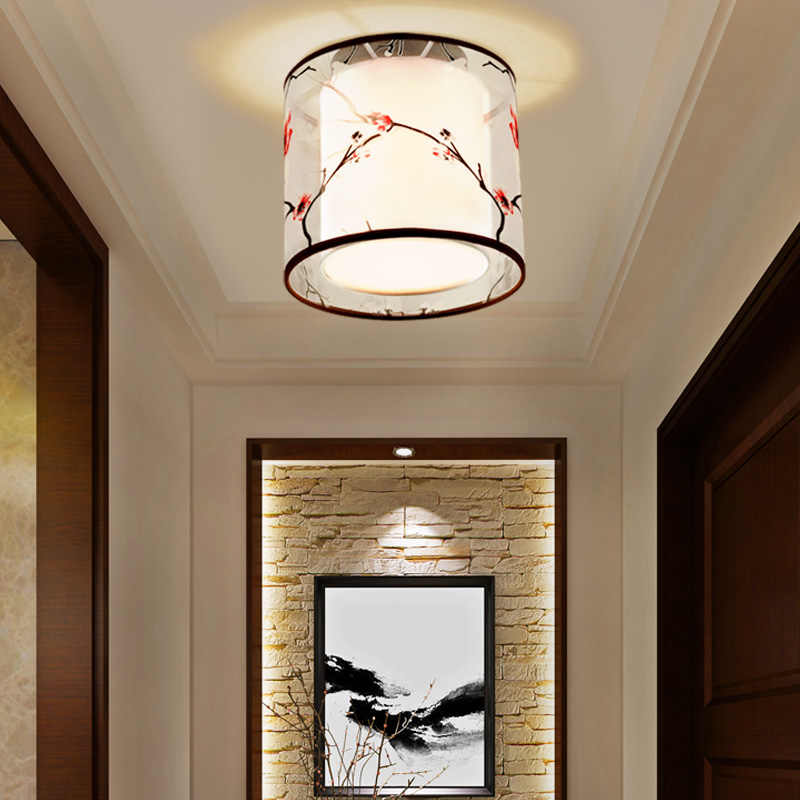 Simple new Chinese style ceiling light aisle corridor small ceiling light warm romantic Chinese style fabric ceiling light balcony light