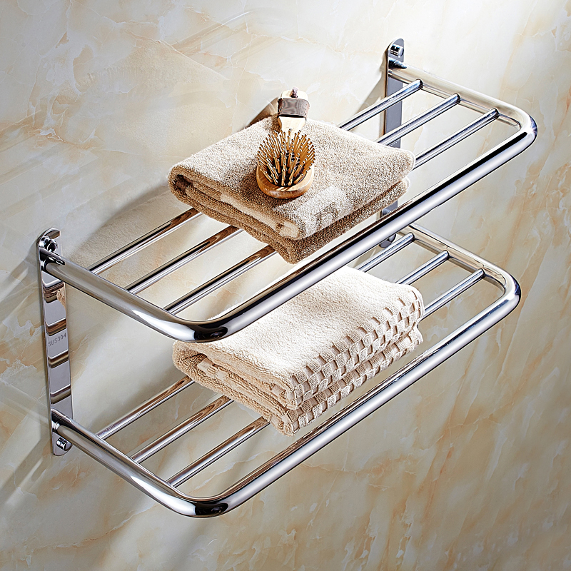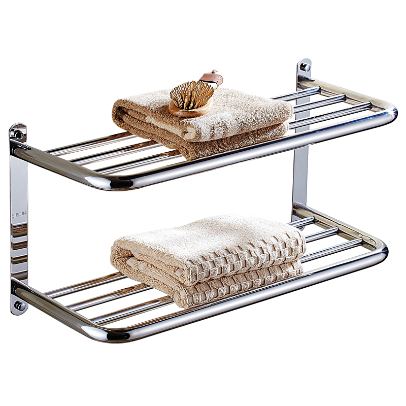 Towel frame Bathroom 304 stainless steel shelf without punching double layer towel frame hotel wall mounted