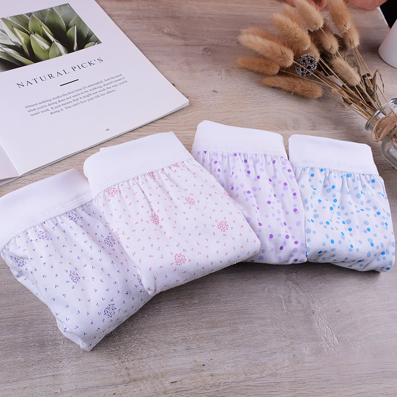 4 AB Underpants female pure cotton High width waist printed comfort bag Hip Large Size Mommy Loose Antibacterial Triangle Pants 0182