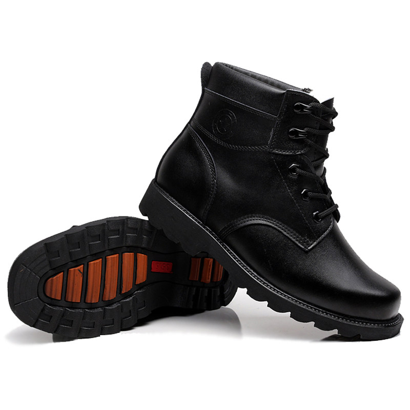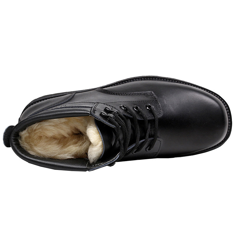 Boots for men's winter warming work boots for cold cotton shoes black leather shoes plus fluff army hook shoes