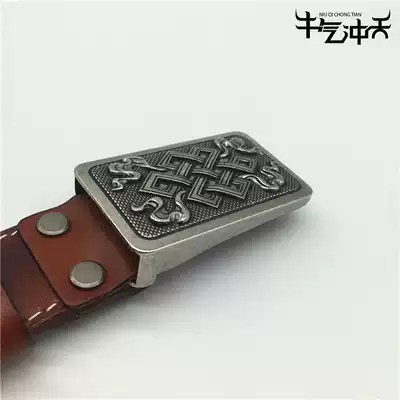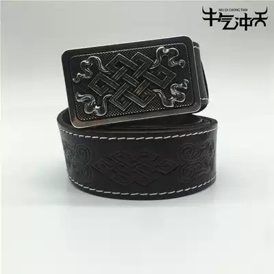 Grassland style Mongolian element belt head layer yellow cowhide carving belt personality National style flower pattern pants belt belt head
