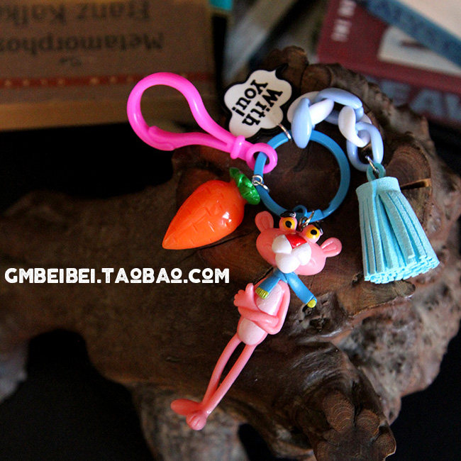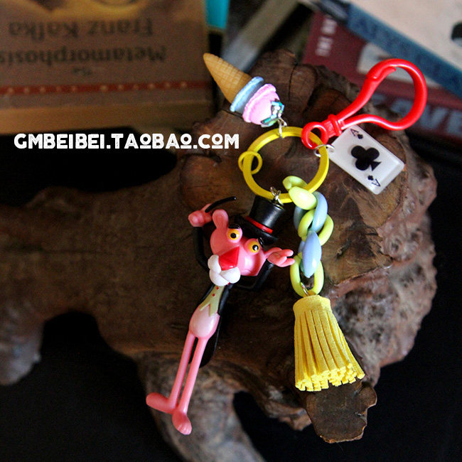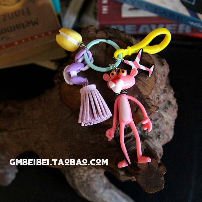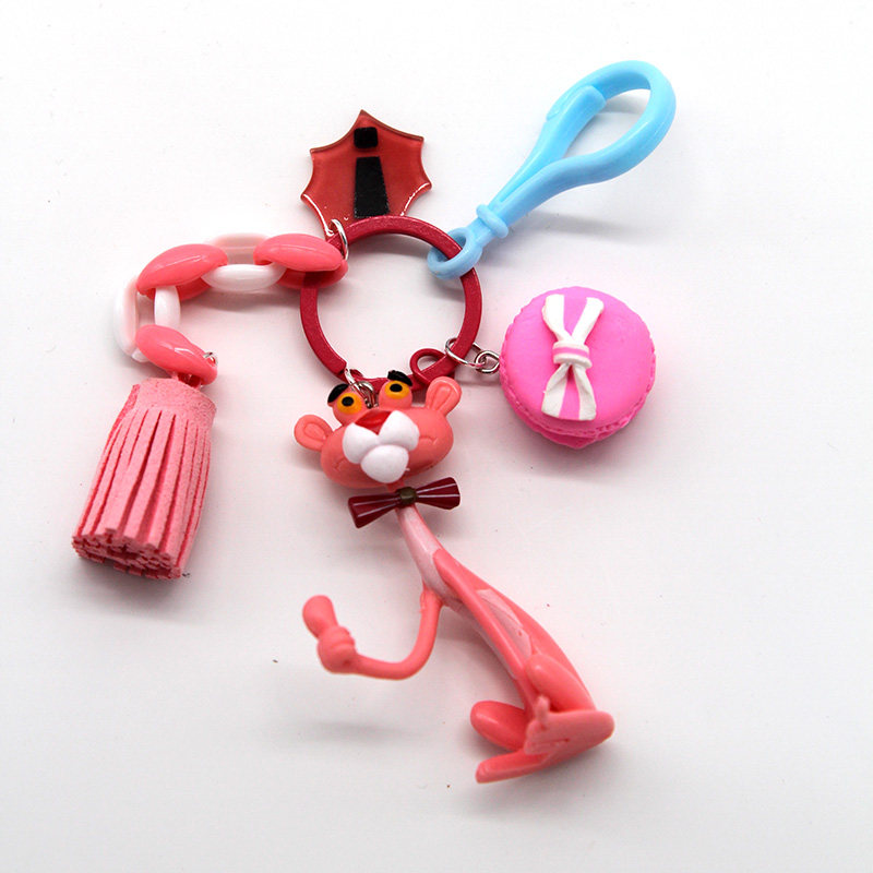 South Korea Ins Girl Hearts Cartoon Key Buttons Cute Powder Naughty Red Leopard Plush Key Chain Woman Bag Pendant