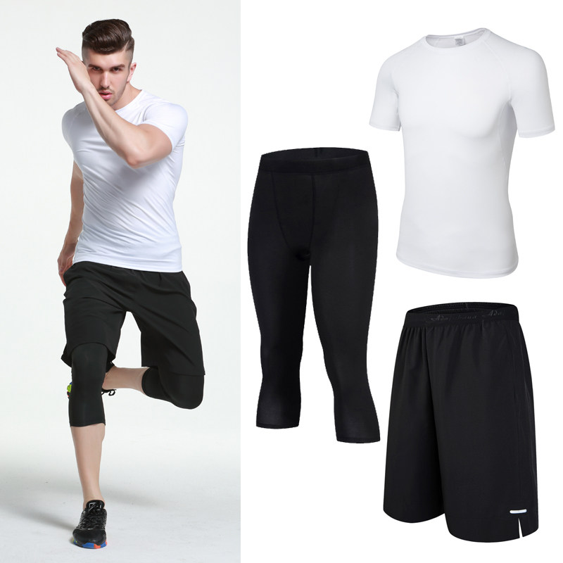 Running Fitness Suit Men Sports Suit Men's Spring Fall Short Sleeves 50% Pants Youth Speed Dry Fitness Room Tight Fit Three-Taobao