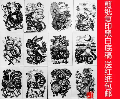 A3 size handmade paper-cut material pattern photocopying manuscript Zodiac Chinese dream Send red paper