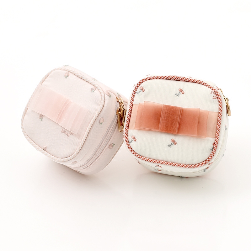 Day Series Sweet Merry Small Cherry Strawberry Embroidered Square First Decorated Box Travel Portable Jewellery Containing Bag